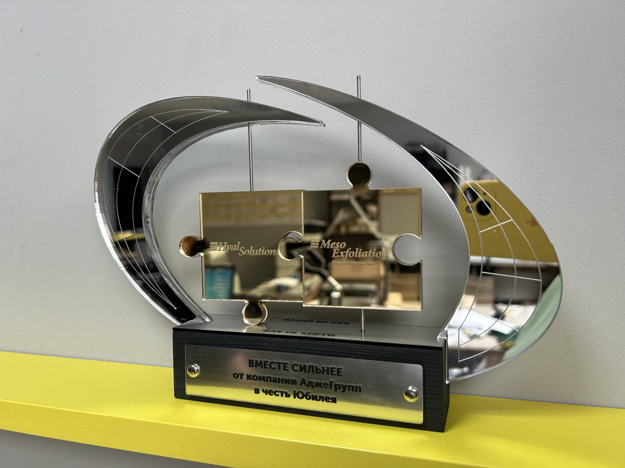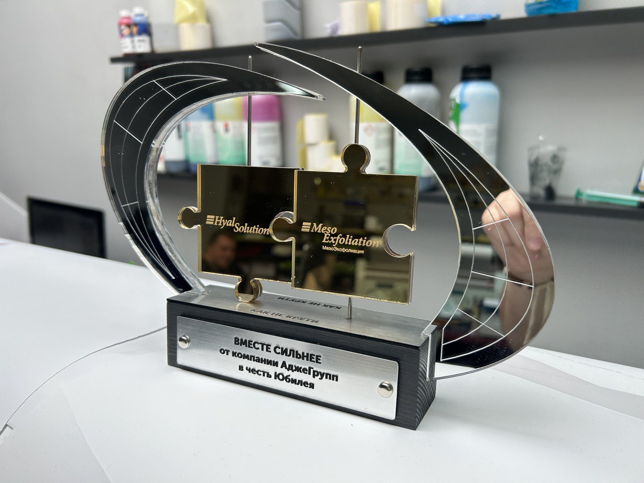 – Эстетичность и качество: Изящный дизайн и высококачественные материалы делают награду не только символом признания, но и стильным украшением для любого офиса.