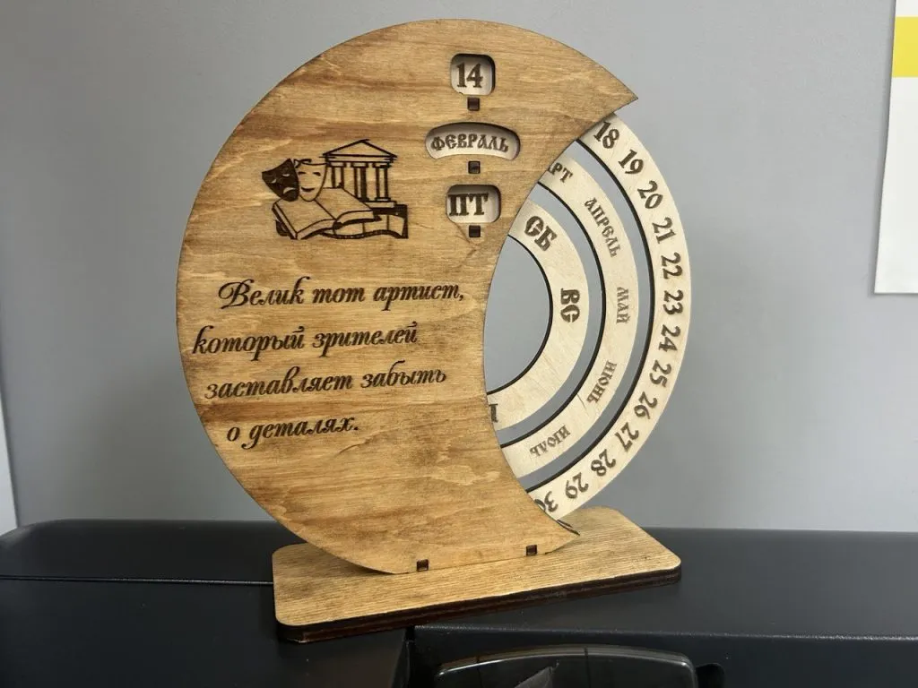 Деревянный вечный календарь с гравировкой — это не просто инструмент для отслеживания времени, но и стильный элемент декора, который подчеркнет вашу индивидуальность и вкус.