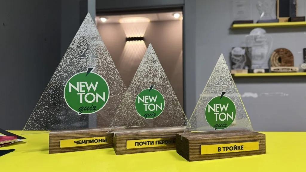 Современные геометрические призы – стильные пирамиды с брендингом, подчёркивающие статус победителей.