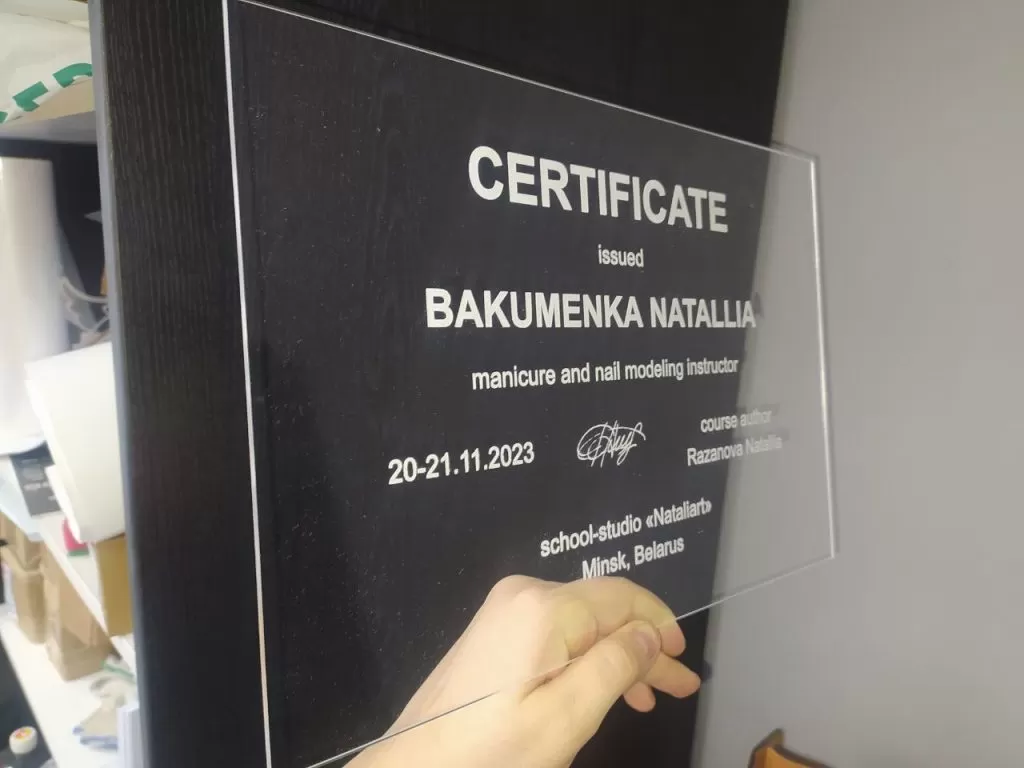 – Эстетичность и красота: Оргстекло обладает прозрачностью и блеском, что придает сертификатам и дипломам элегантный и современный вид.