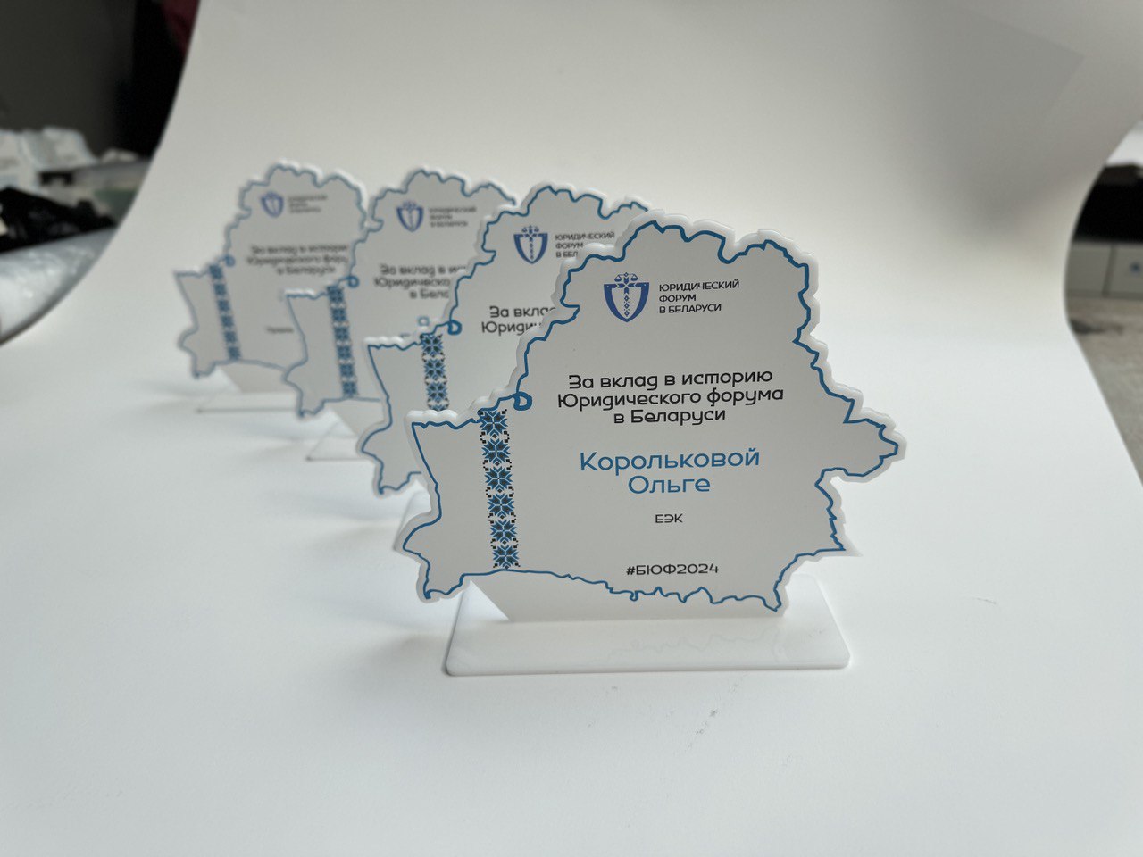 Ищете престижную и стильную награду для юридического мероприятия? Наградная статуэтка “Юридический форум Беларуси” из оргстекла — это идеальный выбор для корпоративных клиентов, организаторов мероприятий и частных лиц, которые хотят подчеркнуть значимость достижений в юридической сфере.