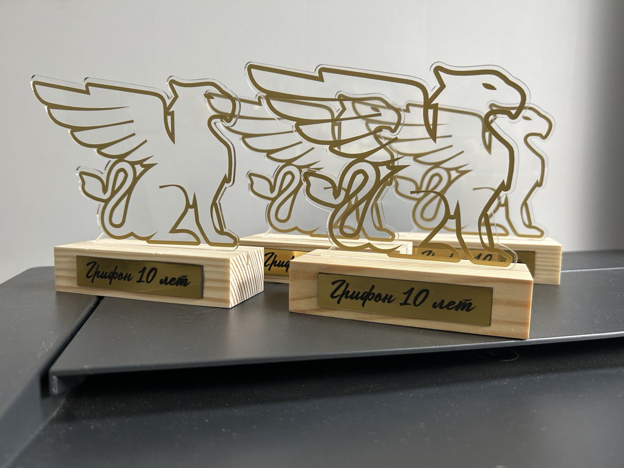 Наградная продукция из оргстекла пользуется большой популярностью благодаря современному дизайну, долговечности и широким возможностям персонализации. Недавно мы в LORO-DESIGN изготовили серию призов для футбольного клуба FC PON’S – стильные акриловые награды с гравировкой надписи BEST PLAYER и изображением футболиста. Также был выполнен заказ на призы с изображением грифона и гравировкой шильды «Грифон – 10 лет».
